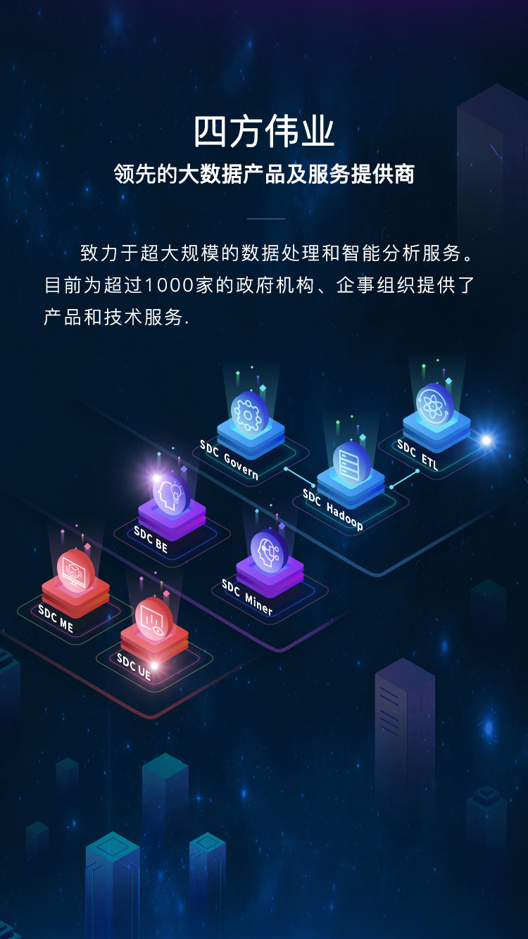 致力于超大規(guī)模的數(shù)據(jù)處理和智能分析服務(wù)。目前為超過1500家政府機構(gòu)、企事組織提供了產(chǎn)品和技術(shù)服務(wù)。